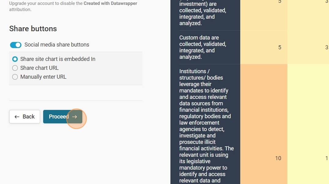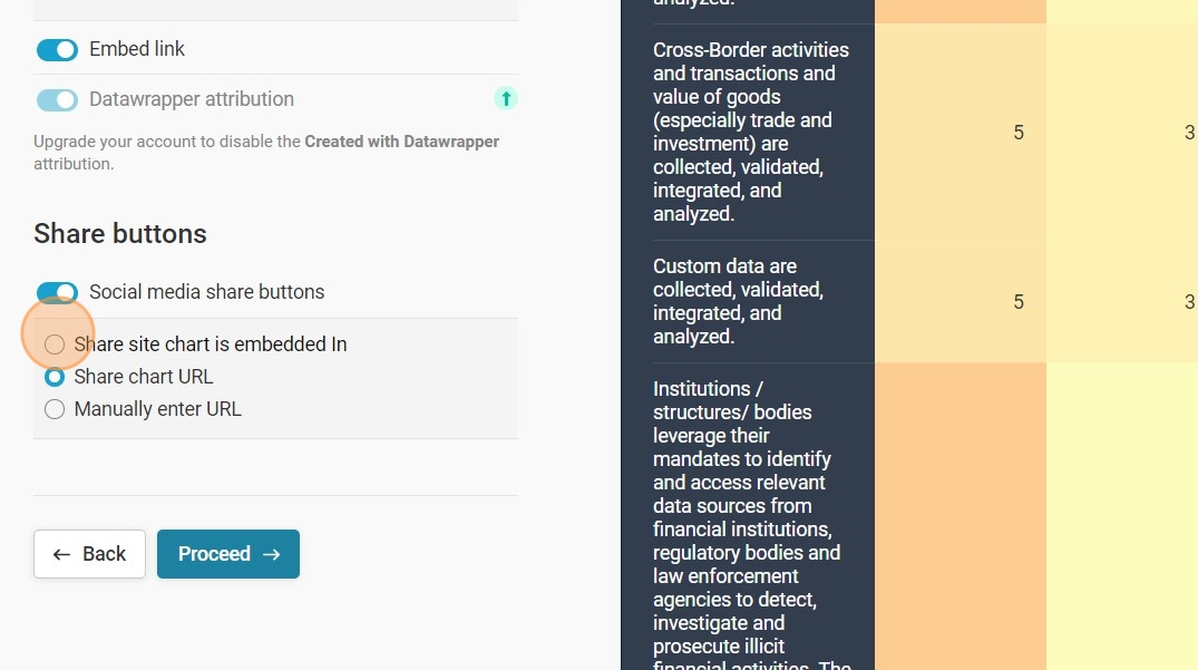 16. And set the social media sharing preferences. Selecting 'Share site chart is embedded in' is recommended to optimize traffic to the web site.