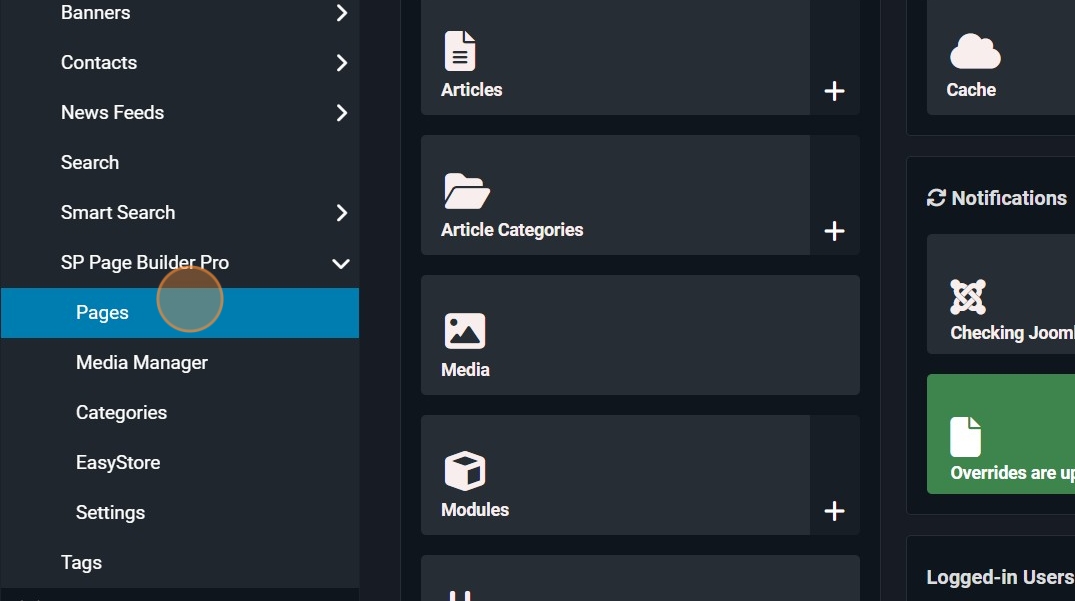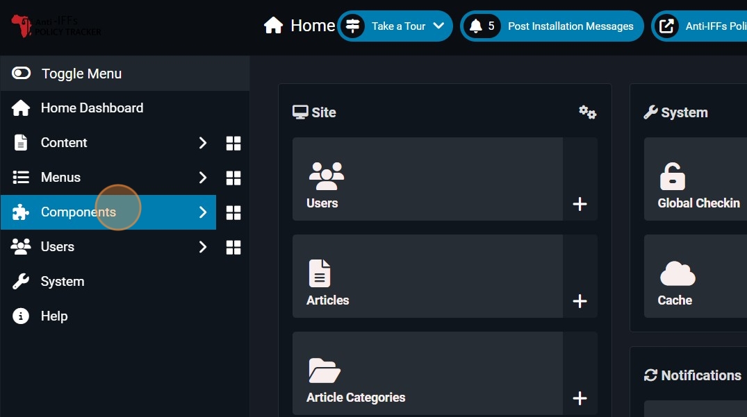 21. Once logged in to the Joomla admin panel, click 'Components.'