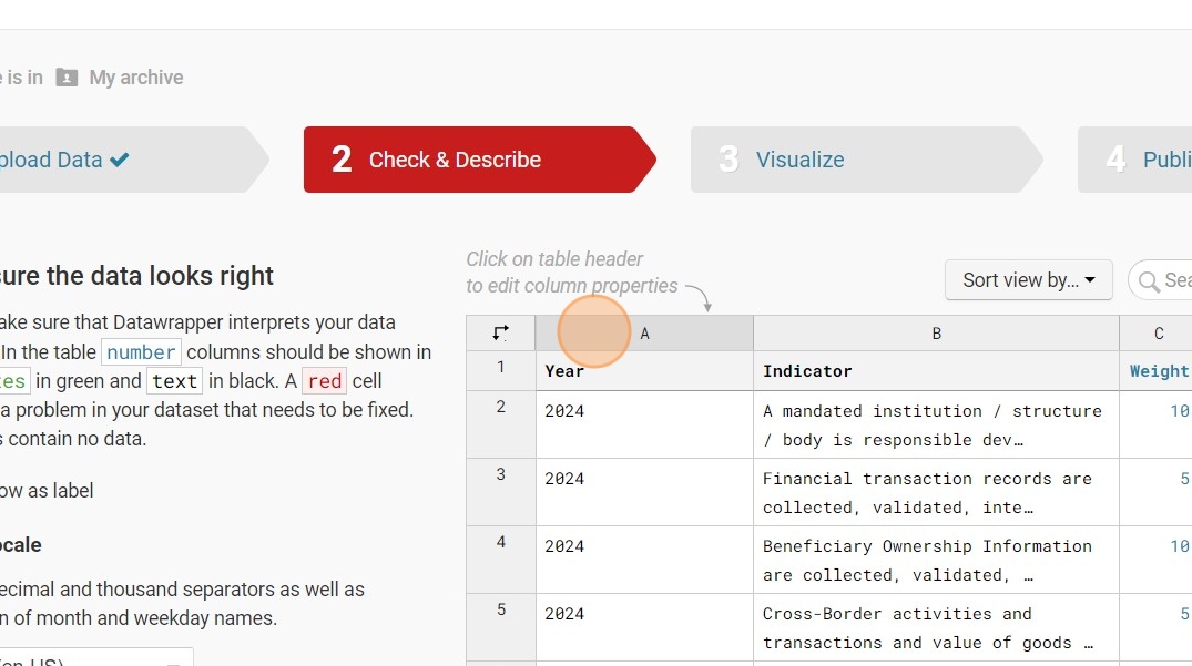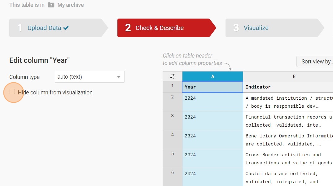 12. Click on the column you wish to hide, then select 'Hide Column from Visualization.'