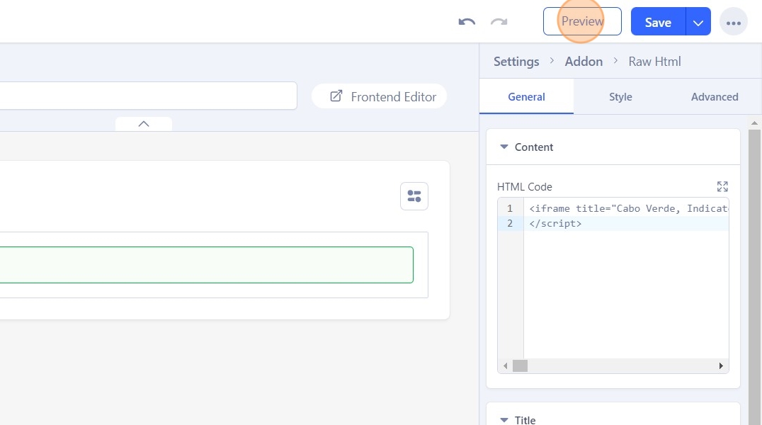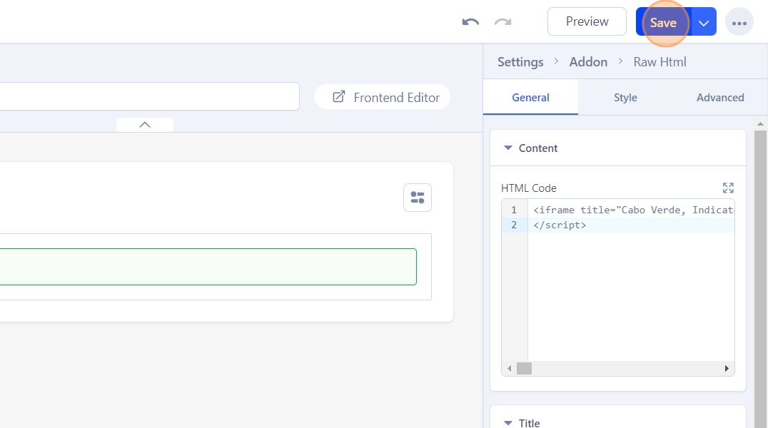 30. And then paste the visualization's embedded HTML code, copied from Datawrapper in the previous step.