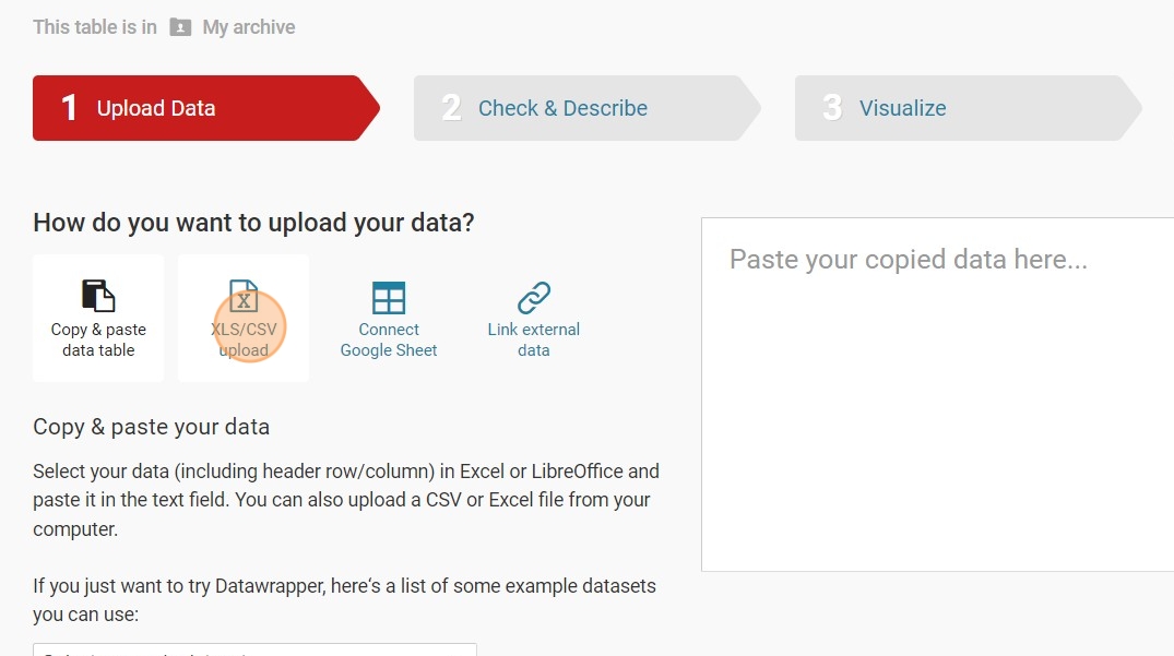 6. Switch to a new tab and head to 'Datawrapper' by visiting https://app.datawrapper.de/