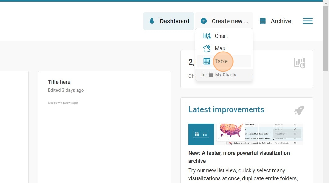 8. Once logged in, go to 'Create New' and then select 'Table.'